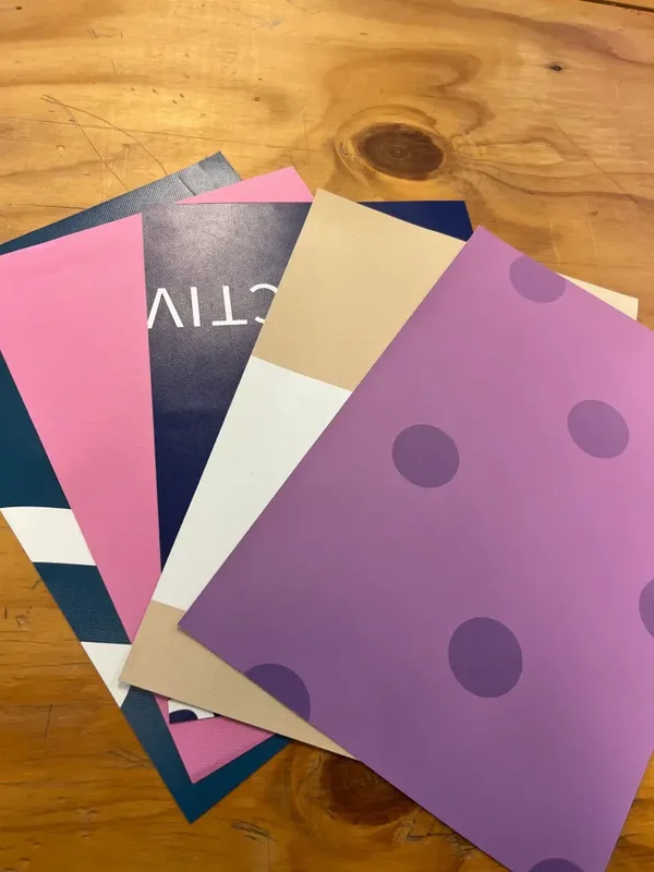 Pages intérieures en enveloppe, papier cyclo ou papier d'écolier.